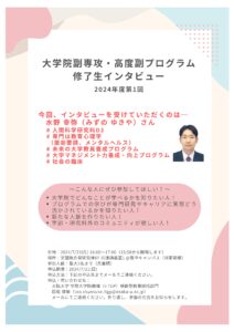 - 第1回副専攻・高度副プログラム修了生インタビューを実施しました(2024/7/22)