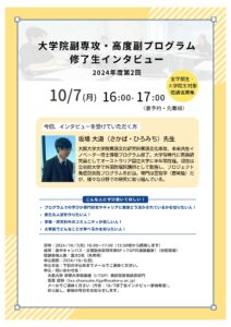 - 第2回副専攻・高度副プログラム修了生インタビューを実施しました(2024/10/7)