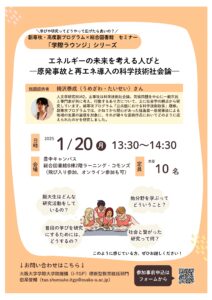 - 副専攻・高度副プログラム×総合図書館セミナー「学際ラウンジ」シリーズ第1回「エネルギーの未来を考える人びと —原発事故と再エネ導入の科学技術社会論—」を開催しました(2025/1/20)