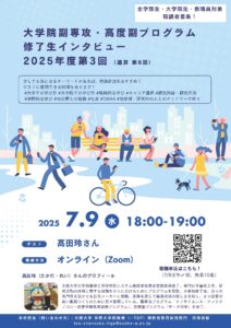 - 第7回(2025年度第2回)副専攻・高度副プログラム修了生インタビューを実施しました(2025/6/20)