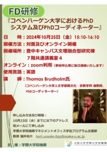 - 【学内限定】:【学際大学院機構(i-TGP)からFDのご案内】10月25日(金)15:10-16:10 i-TGP FD “PhD system and PhD coordinator at University of Copenhagen” on 25th October