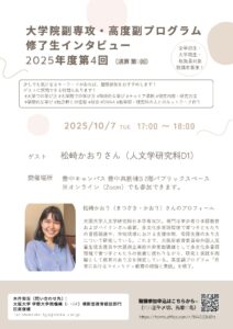- 第9回(2025年度第4回)副専攻・高度副プログラム修了生インタビューを実施しました(2025/10/7)