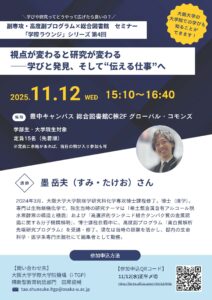 - 副専攻・高度副プログラム×総合図書館セミナー「学際ラウンジ」シリーズ第4回「視点が変わると研究が変わる―学びと発見、そして“伝える仕事”へ」を開催しました(2025/11/12)