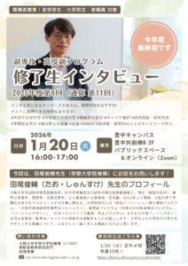- 第11回(2025年度第6回)副専攻・高度副プログラム修了生インタビューを実施しました(2026/1/20)
