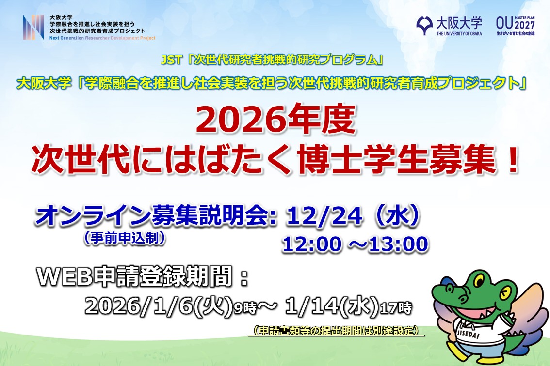2025(令和7)年度 次世代挑戦的研究者育成プロジェクト生の公表について