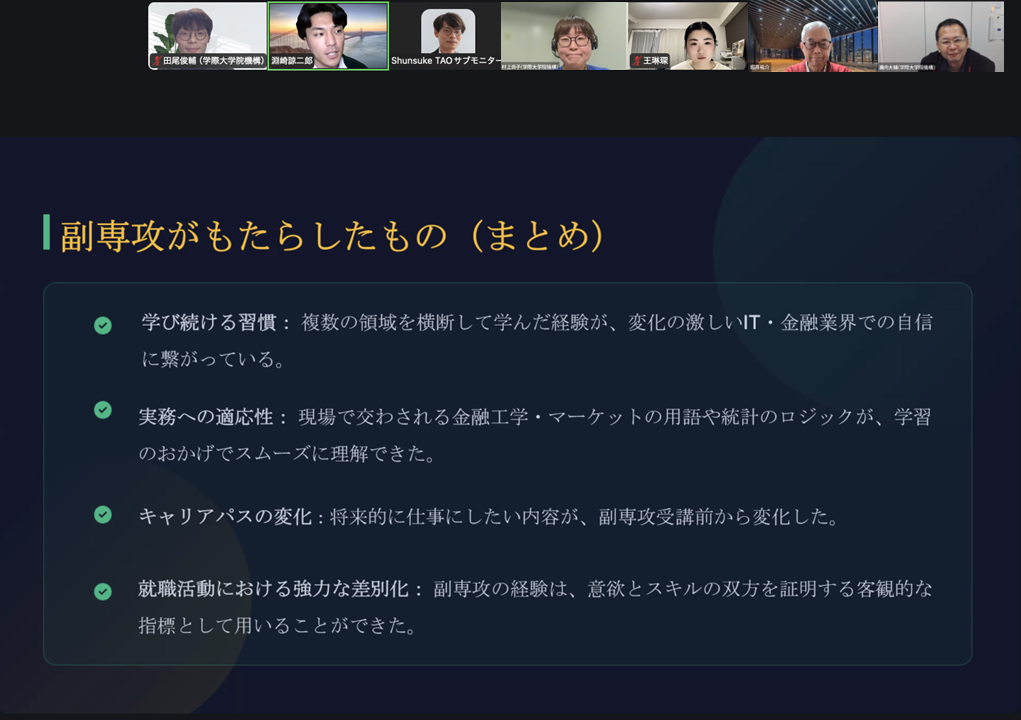 第10回(2025年度第5回)副専攻・高度副プログラム修了生インタビューを実施しました(2025/12/23)